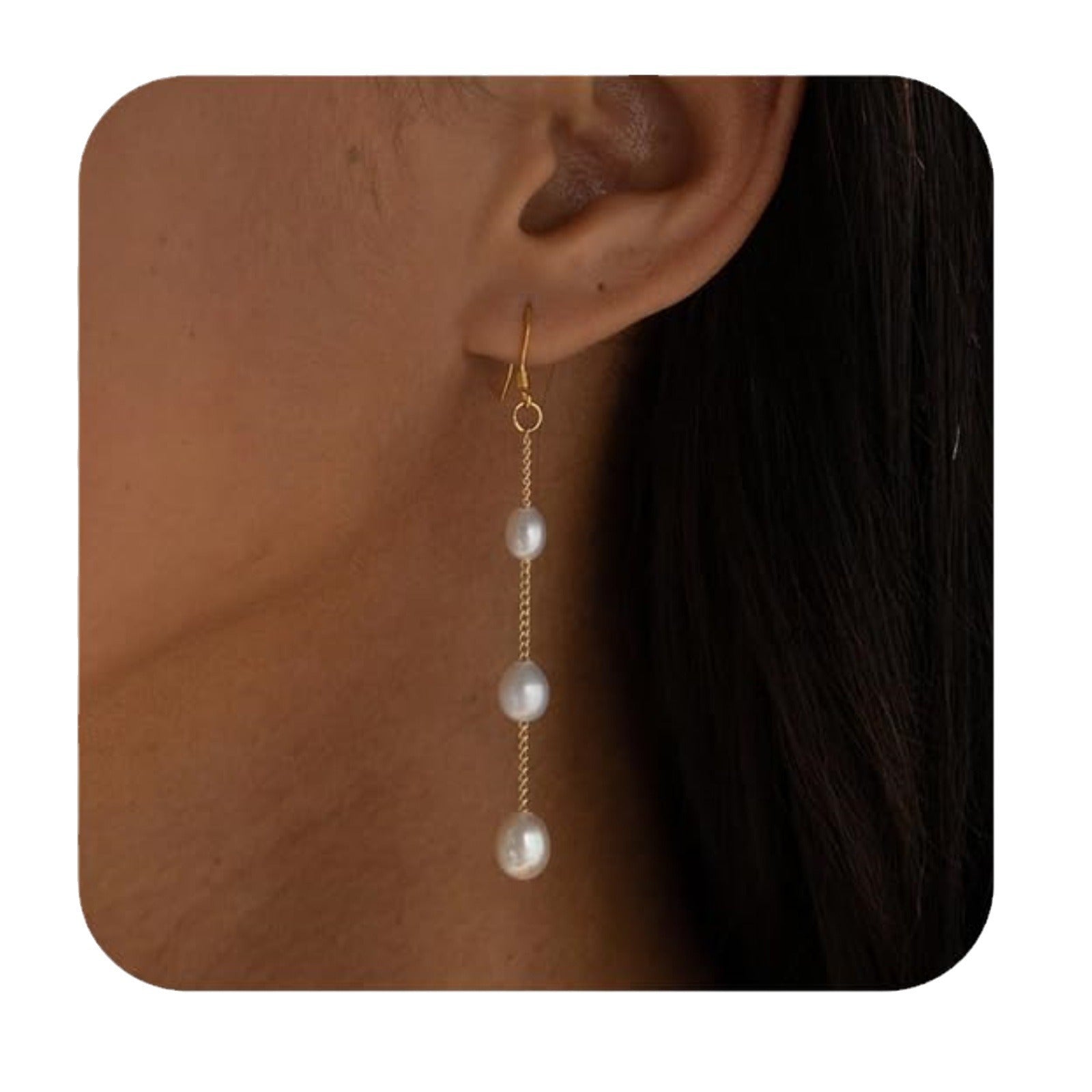 Real Gold Brass Electroplating France Vintage Pearl Earrings Suit