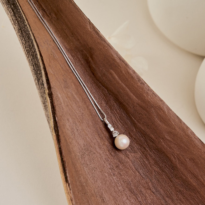 Zircon Pearl Pendant Stainless Steel Thin Chain Necklace
